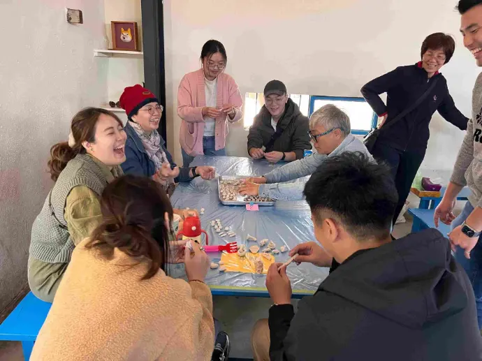大甲的芋頭遠近馳名,而我們親手揉製的芋圓,則包裹著團隊的向心力。大家圍坐在長桌旁,一邊捏著奇形怪狀的麵團,一邊談笑聊著生活點滴。