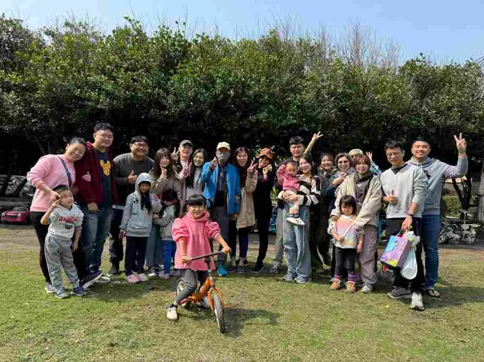 看著火光在窯口躍動,剛剛拿著鏟子流汗堆土的疲憊,彷彿都在這股暖意中消散了。孩子們在草地上奔跑,家人們的笑聲交織著柴火聲,在空氣中慢慢發酵。我們並肩坐著,一起等待著開窯的那一刻。